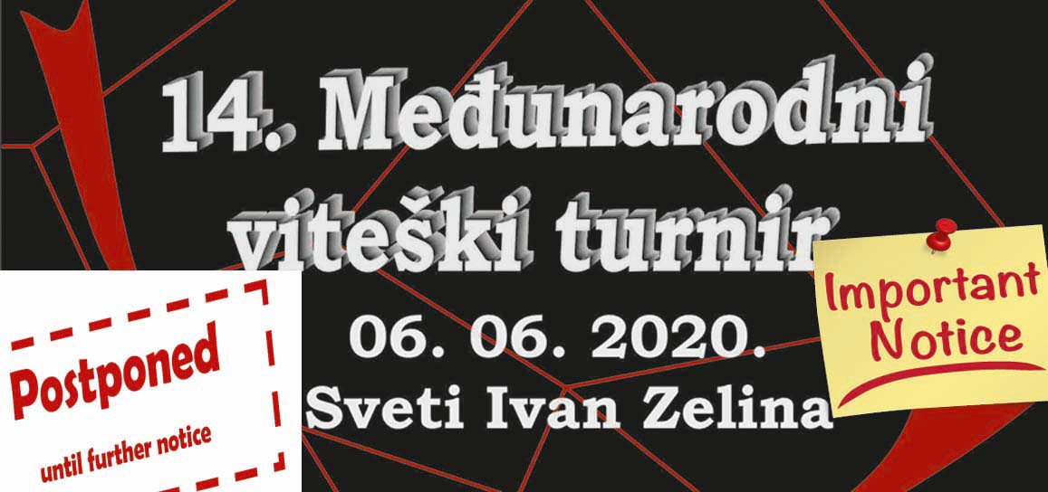 Zbog situacije vezane uz COVID-19 te prema te prema preporukama Stožera civilne zaštite Republike Hrvatske i ograničenja koja su uvedena , a vezana uz održavanje javnih manifestacija - obavještavamo vas da je 14. Međunarodni viteški turnir, koji se trebao održati 6.6.2020. - ODGOĐEN DO DALJNJEGA! Za sve daljnje informacije bit ćete pravovremeno obaviješteni!!